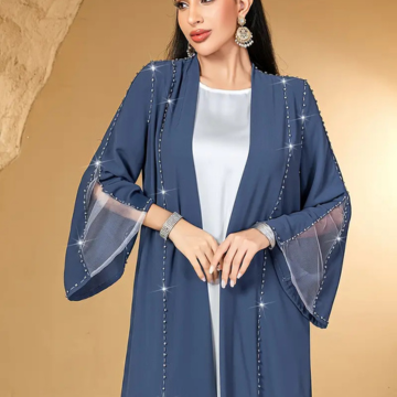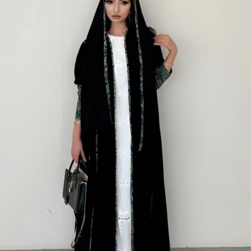 عباية إيليت الملكية المطرزة بالراين والخرز مع حجاب